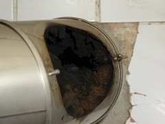 Rauchrohr fast komplett zugerußt. Lebensgefahr für den Betreiber
